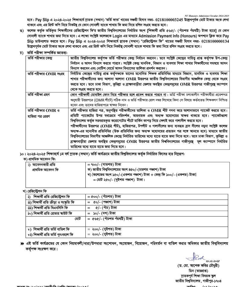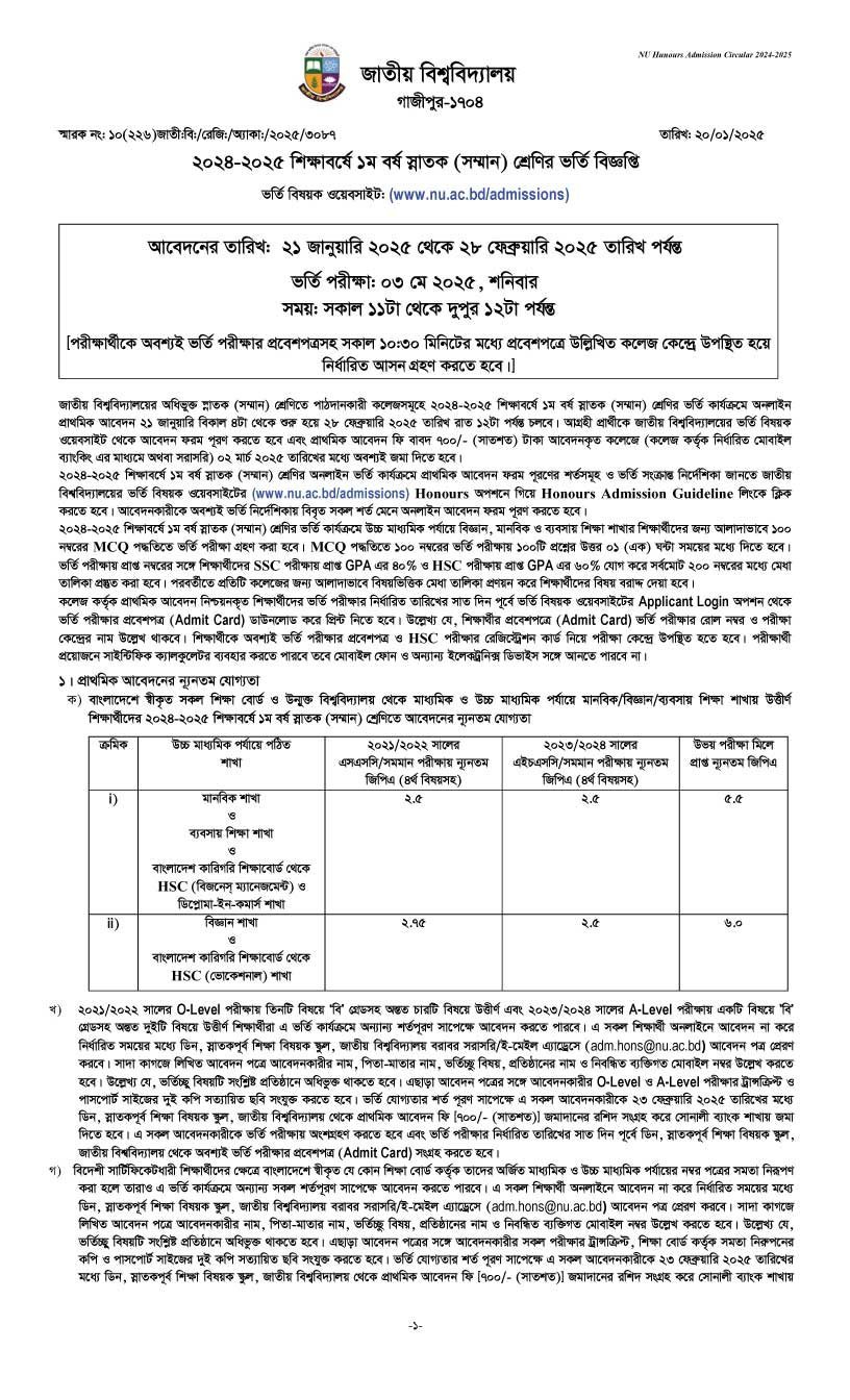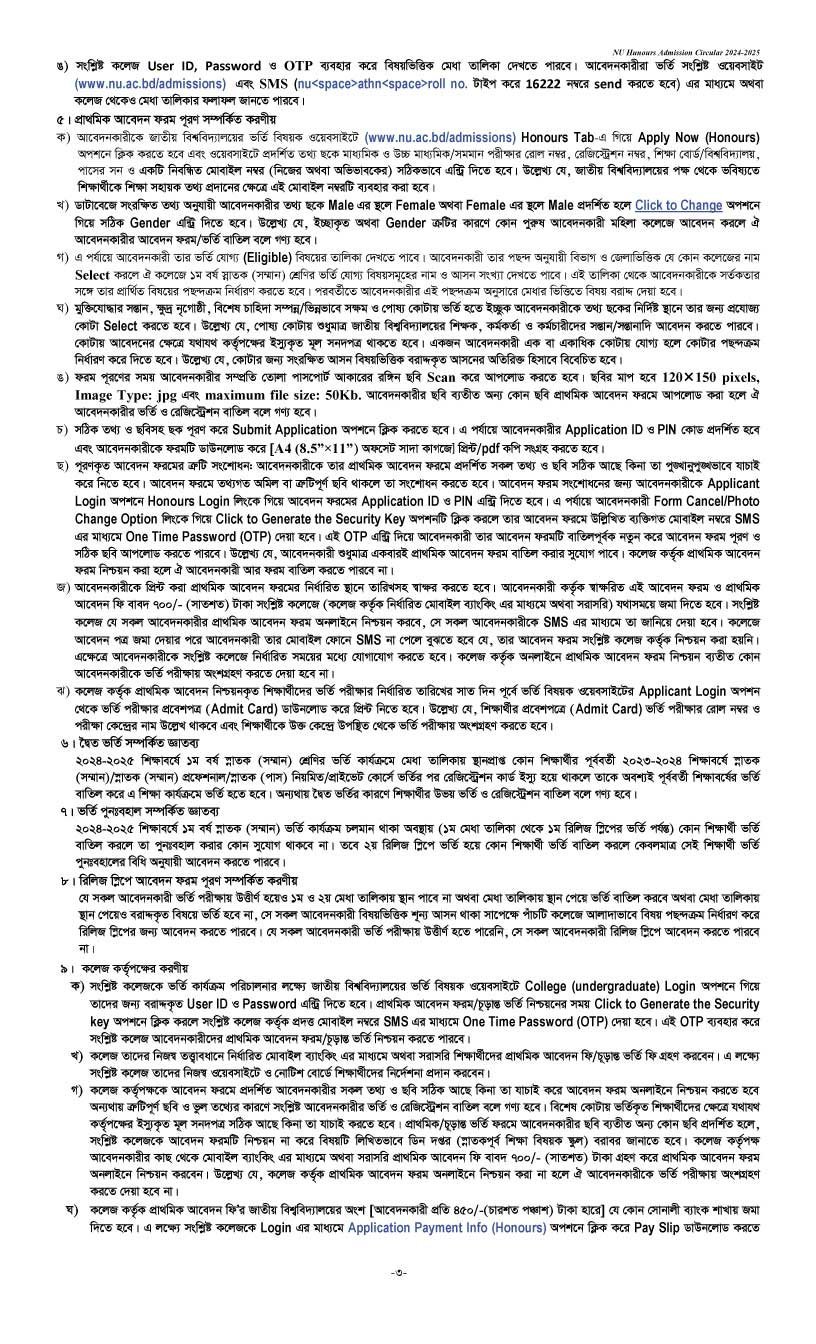 National University Honours Admission Circular 2024-2025